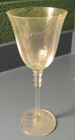 Bar Code 02-01-02-0020 clear glass water goblet Location Room 221 E - cabinet 22 Dimensions 8" high Item Keywords goblet hand prop dishware glassware