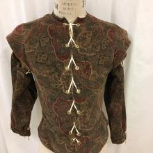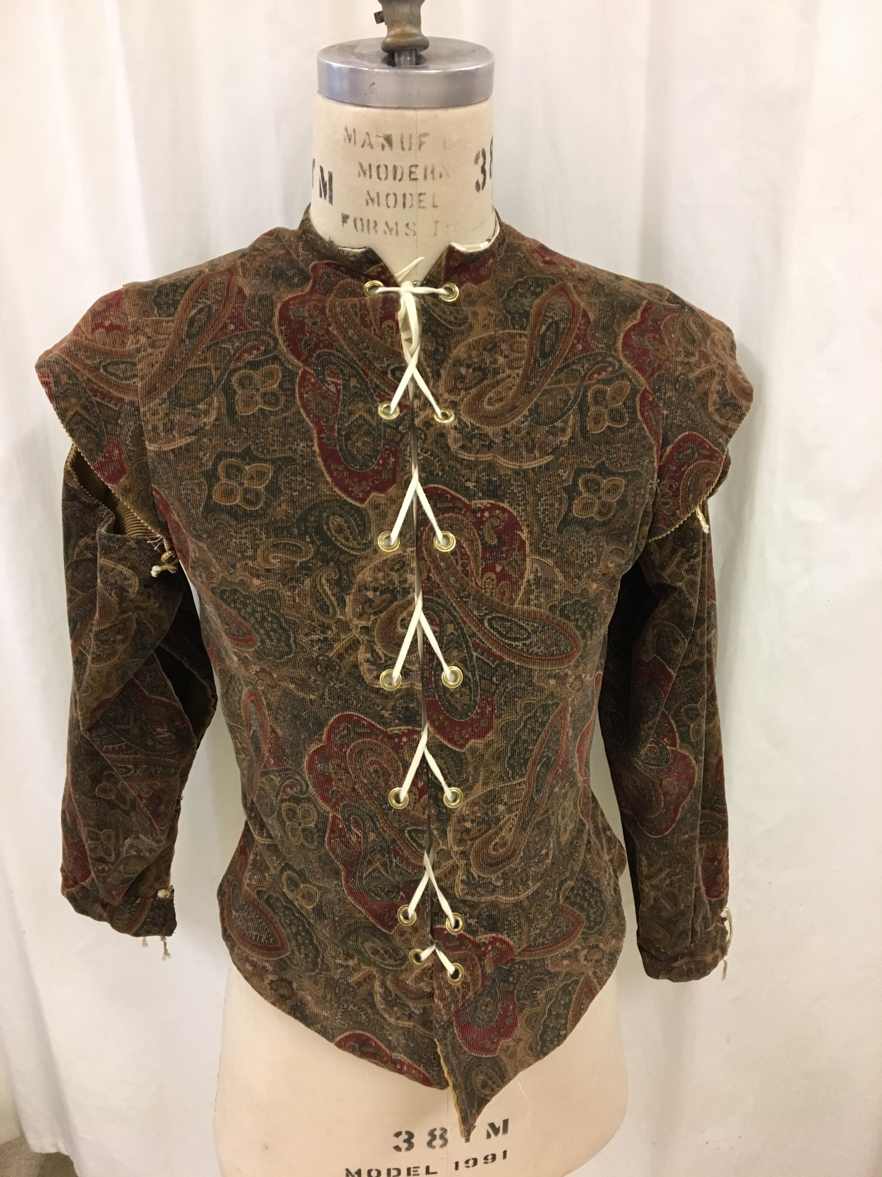 Paisley Doublet 01-01-01-0009 Neutral, brown, paisley patterned, renaissance doublet. Laced up the front and laced on sleeve. Paisley Brown Doublet renaissance men's clothing