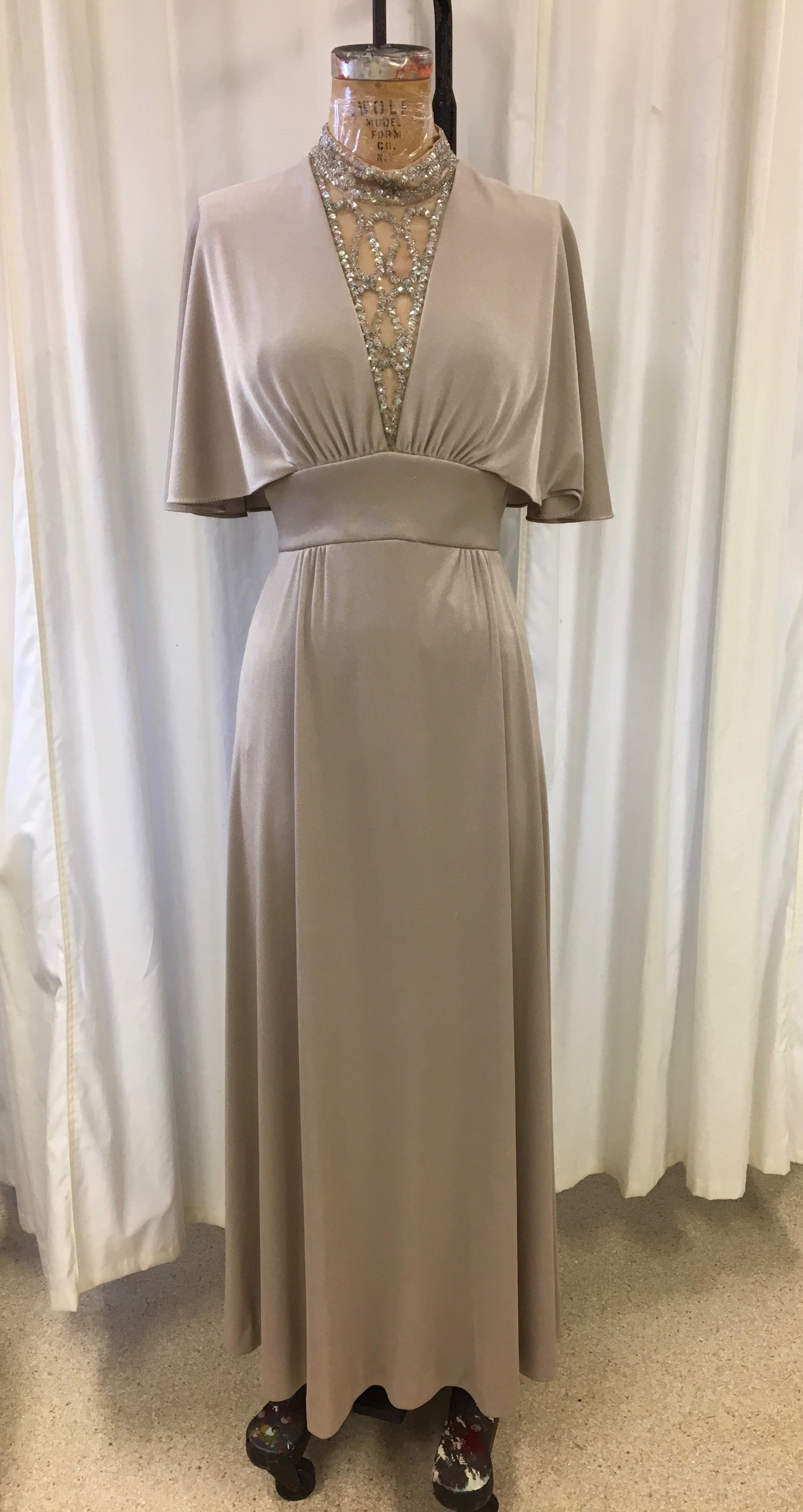 Silver Dress 01-02-03-0064 Silver/gray long dress with V neck insert with sequins. Bat wing sleeves. Gray Sequins dress women's clothing