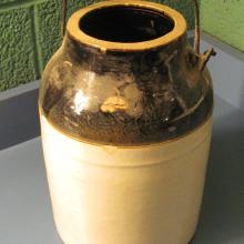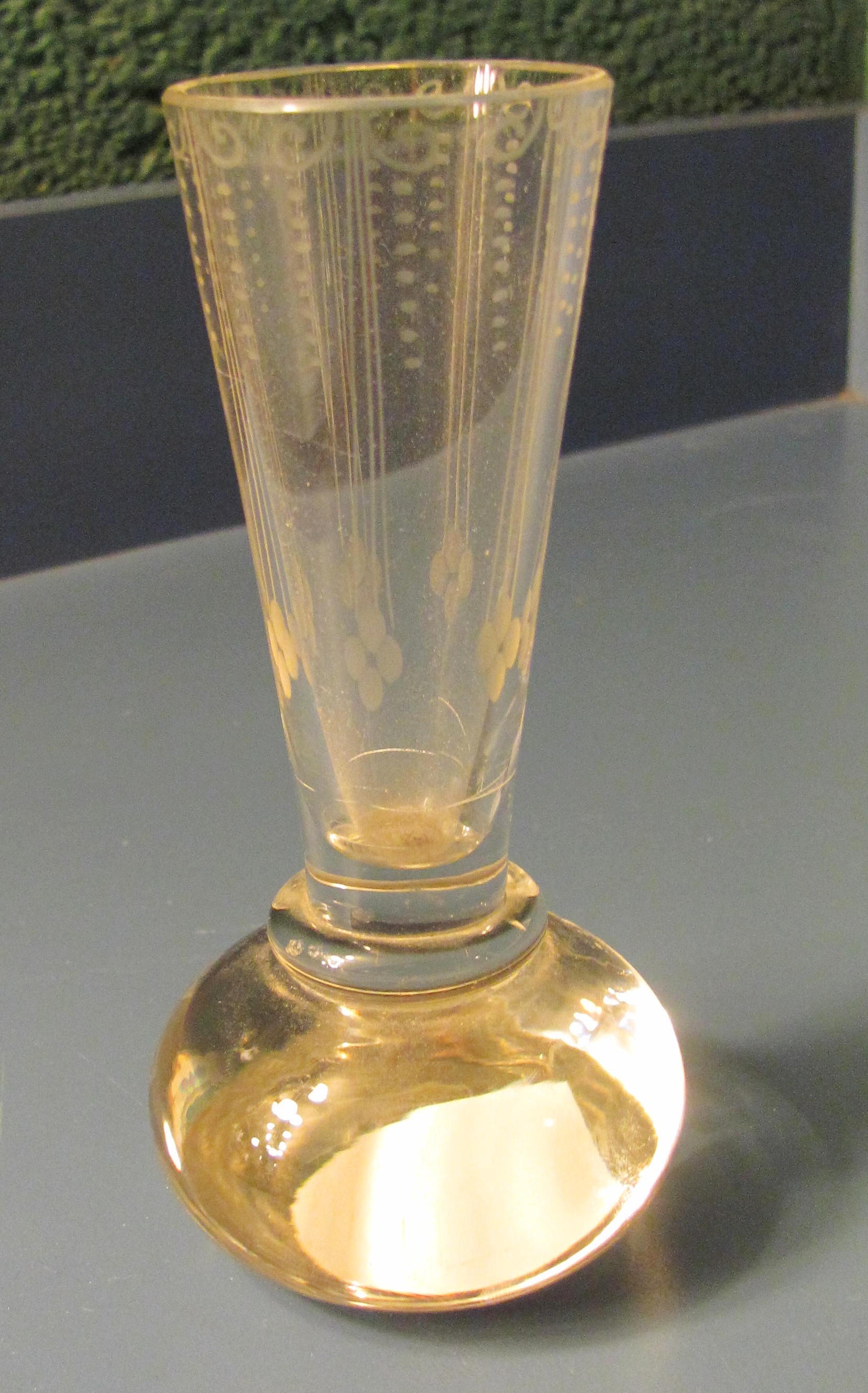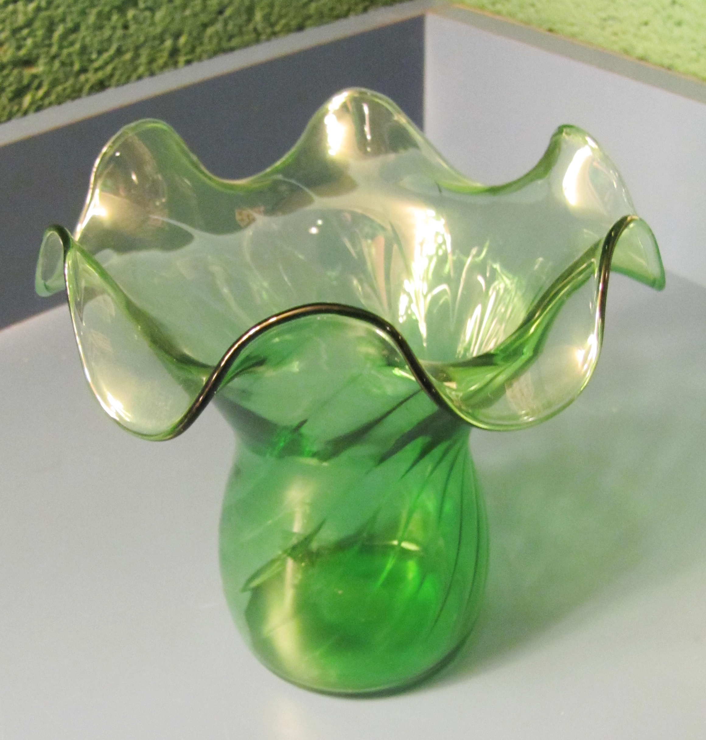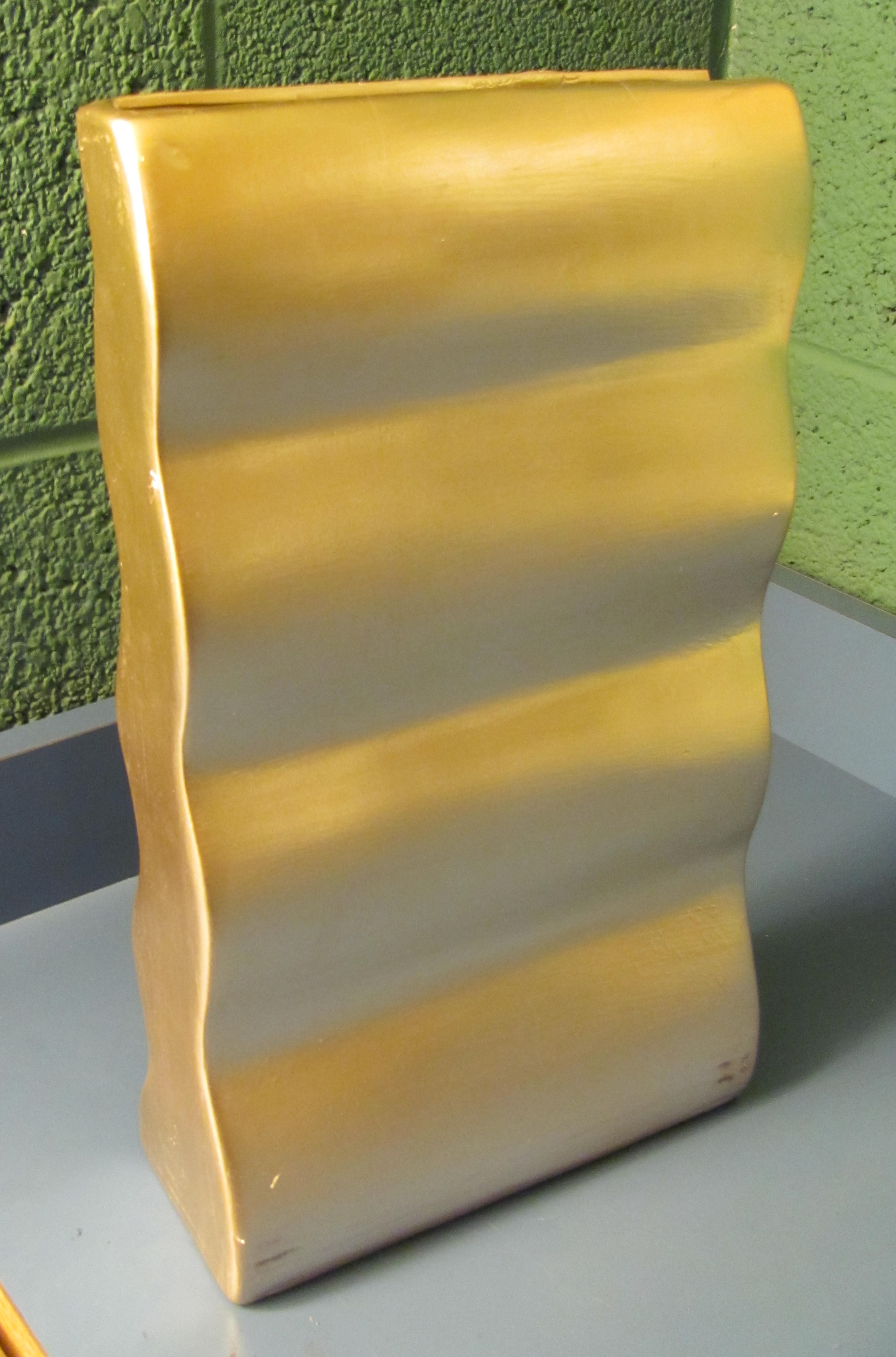 Painted gold vase/table decoration - broken edge, but piece inside