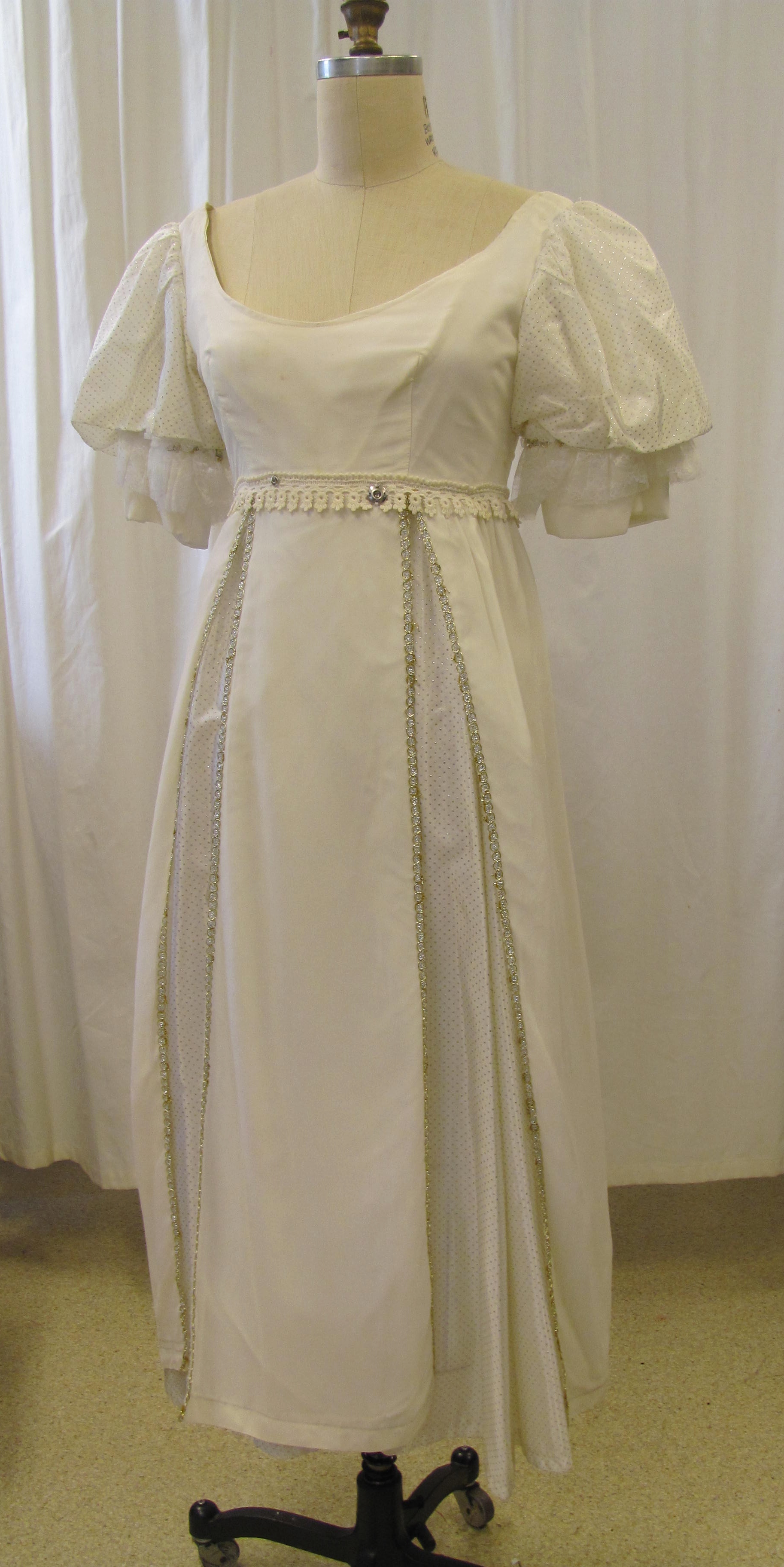 Dress 01-02-03-0006 White dress with short sleeves. 1810s. Early 19th century dress women's clothing white