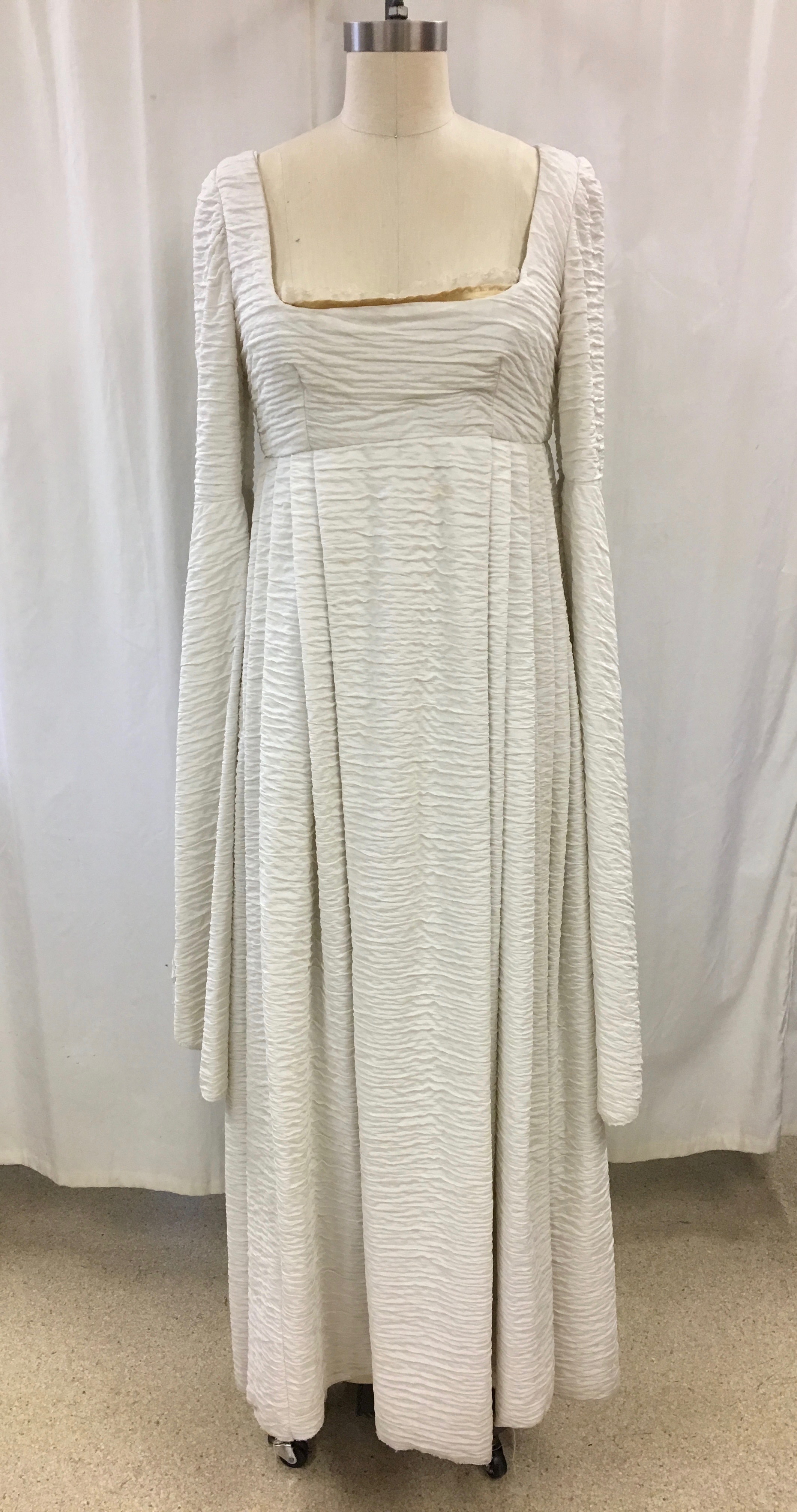 White Midieval Gown 01-02-03-0025 White pleated Medieval gown. Extra long sleeves, Low square neck. medieval women's clothing Gown white