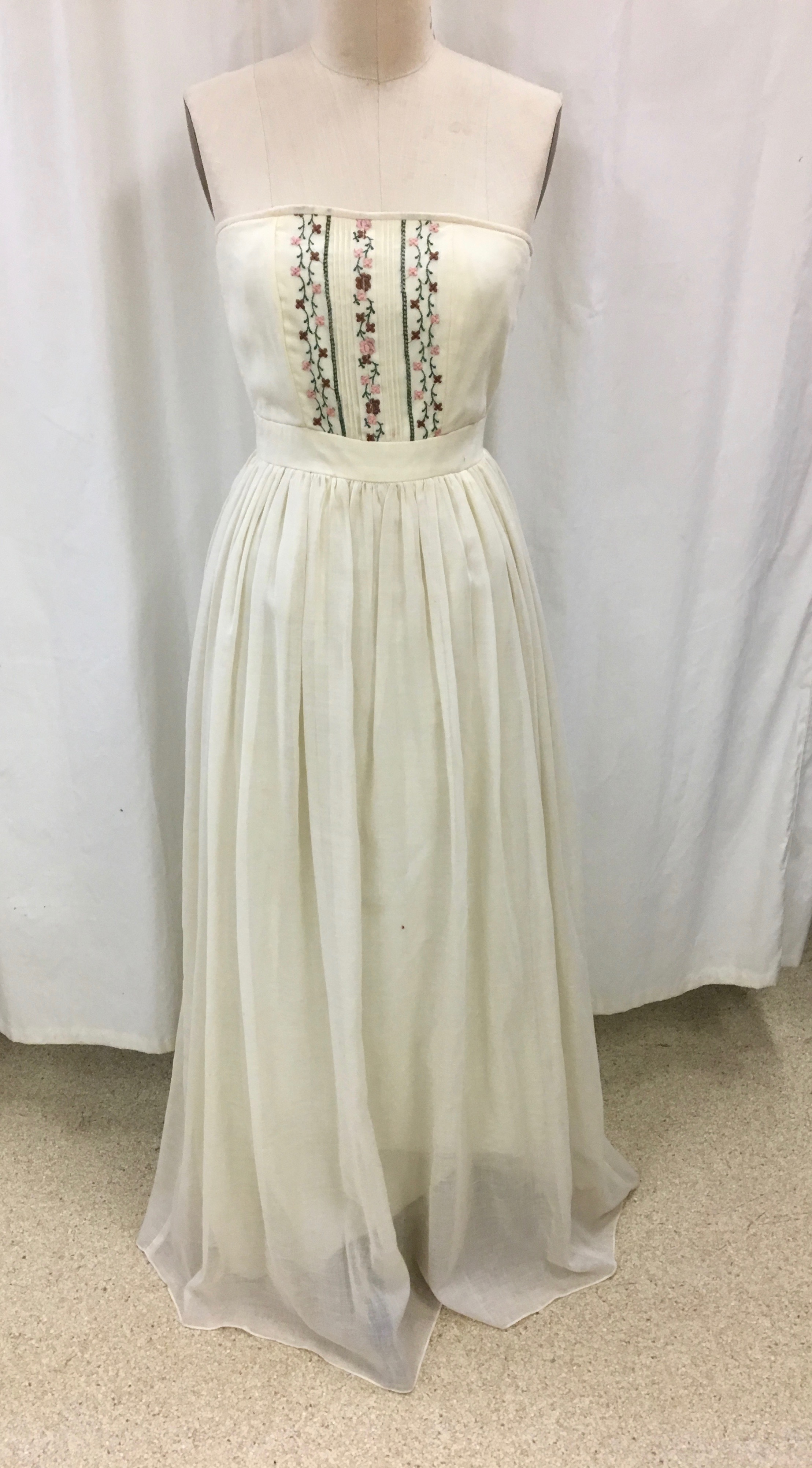White Gown 01-02-03-0031 White strapless gown with flower embroidery on bodice. white Gown women's clothing
