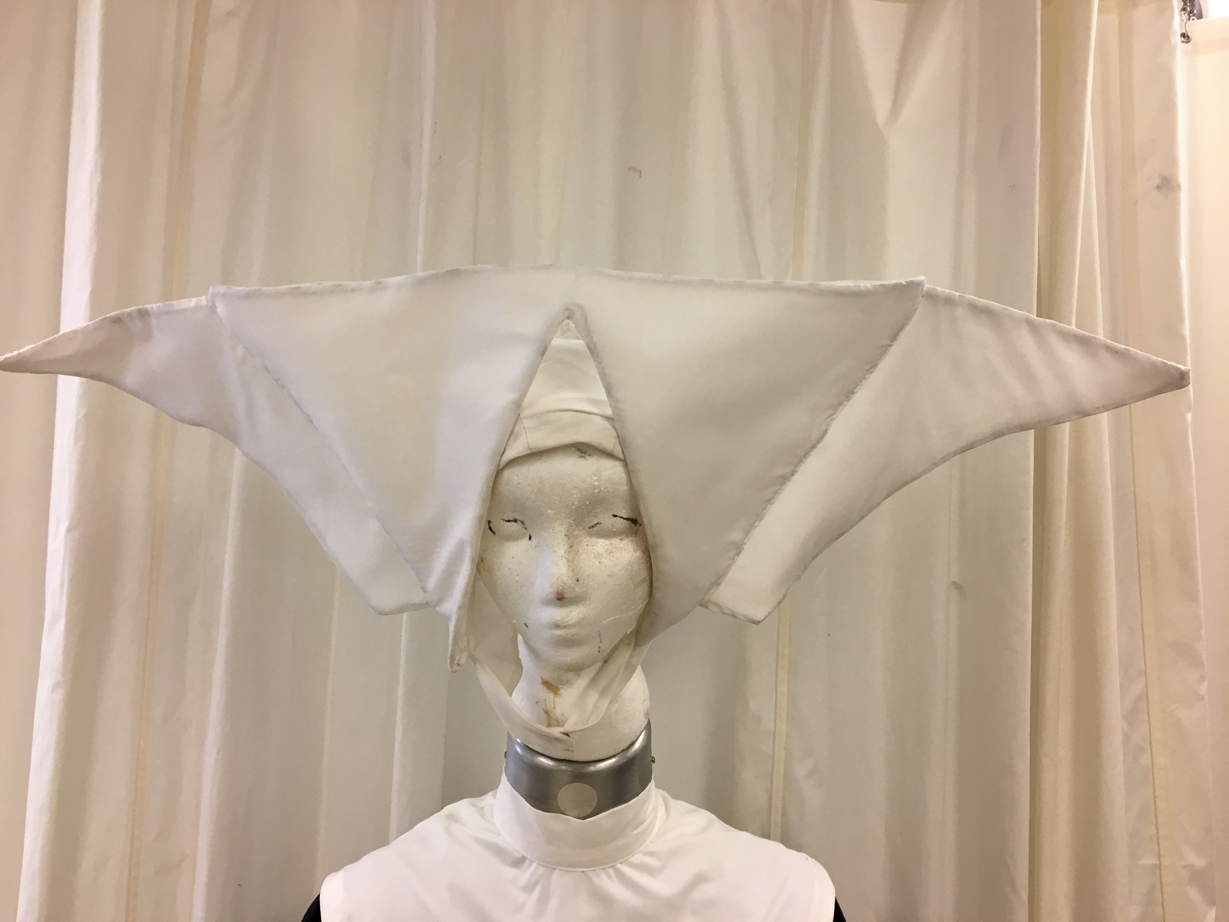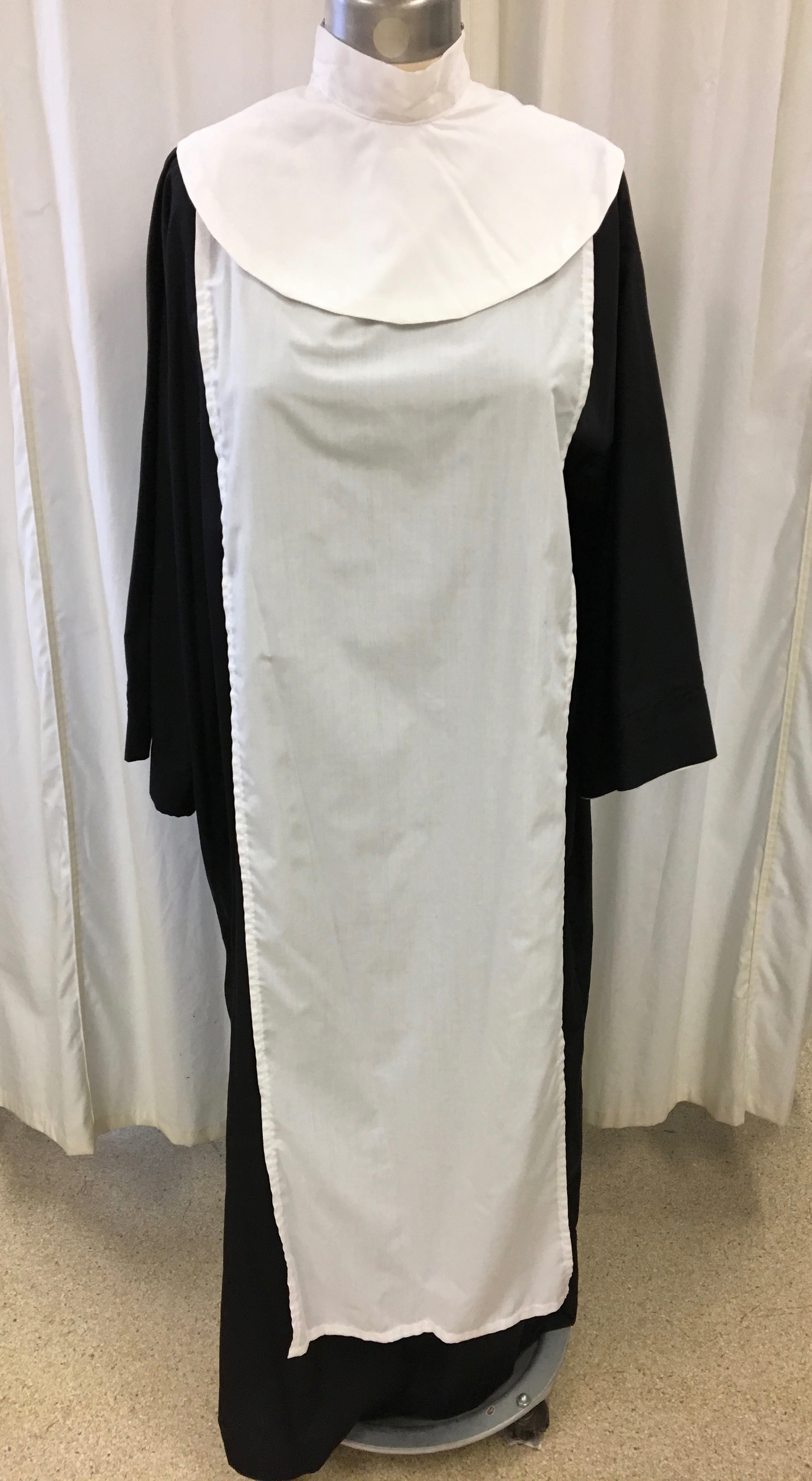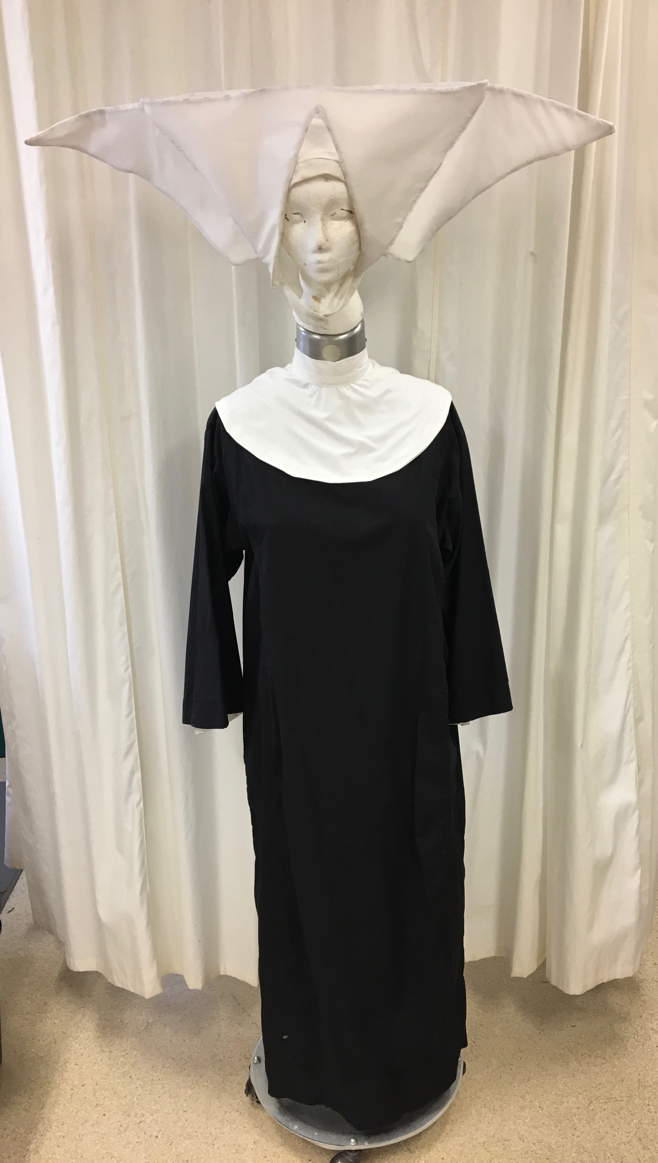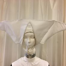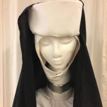 Nun's habit includes: coif, large cornette, long black tunic, white scapular and white collar.