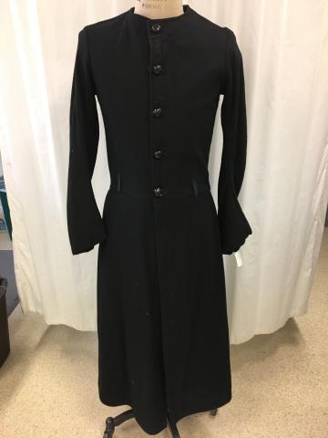 Bar Code 01-01-06-0009 Black, wool, frock coat. Location Costume Shop Storage Row 3 Left Dimensions 37 Chest 31 Waist Time Period 19th Century Item Keywords black Frock coat 19th century men's clothing