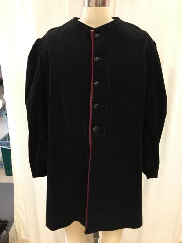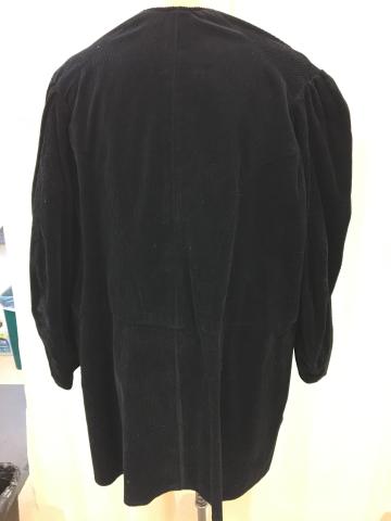 Bar Code 01-01-06-0010 Black corduroy frock coat. Location Costume Shop Storage Row 3 Left Dimensions 50 Chest 50 Waist Time Period 19th Century Item Keywords Frock coat black women's clothing 19th century