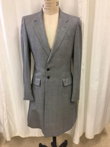 Bar Code 01-01-06-0006 Gray frock coat. Location Costume Shop Storage Row 3 Left Dimensions 37 Chest 31 Waist Time Period 19th Century Item Keywords Gray Frock coat 19th century men's clothing